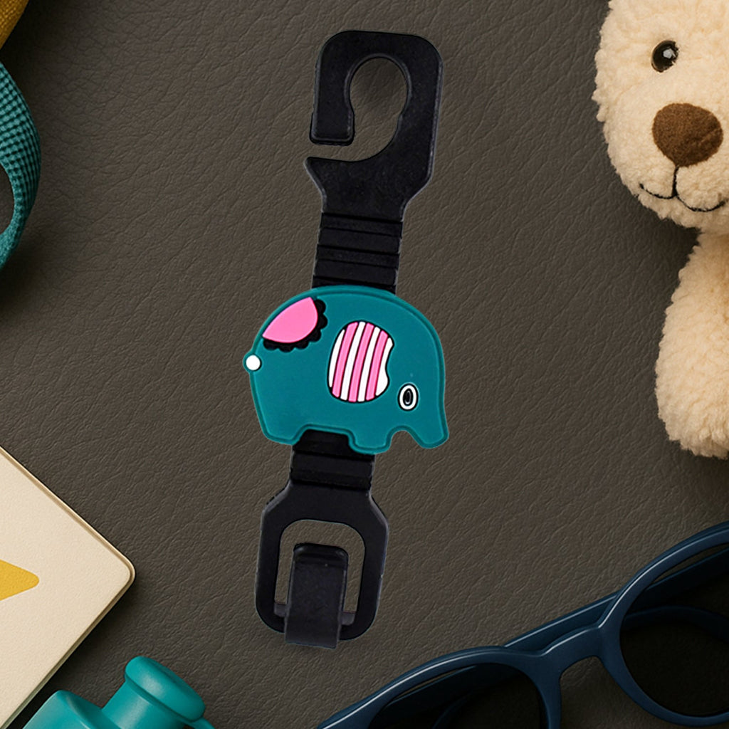 Set of 2 Multi-Purpose Elephant Design Car Seat Headrest Hooks for Bag, Bottle, and Purse Holder – Universal Plastic Hanger Clip with Cute Cartoon Theme for Backseat Organization (Mix Design)