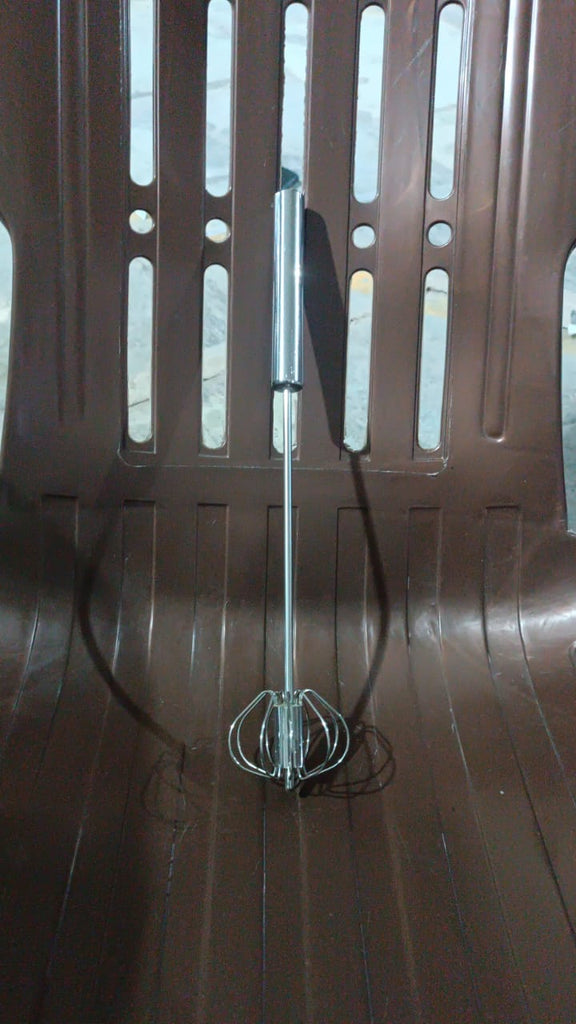 Big Stainless Steel Egg Whisk, Hand Push Rotary Whisk Blender Versatile Milk Frother Hand Push Mixer Stirrer Make Froth, Foam & Whipped Cream Semi Auto Egg Beater Frother, Stirrer, Blending, Whisking, Beating, Stirring Lassi / Butter Milk Maker / Mixer (1 Pc / 35 Cm)